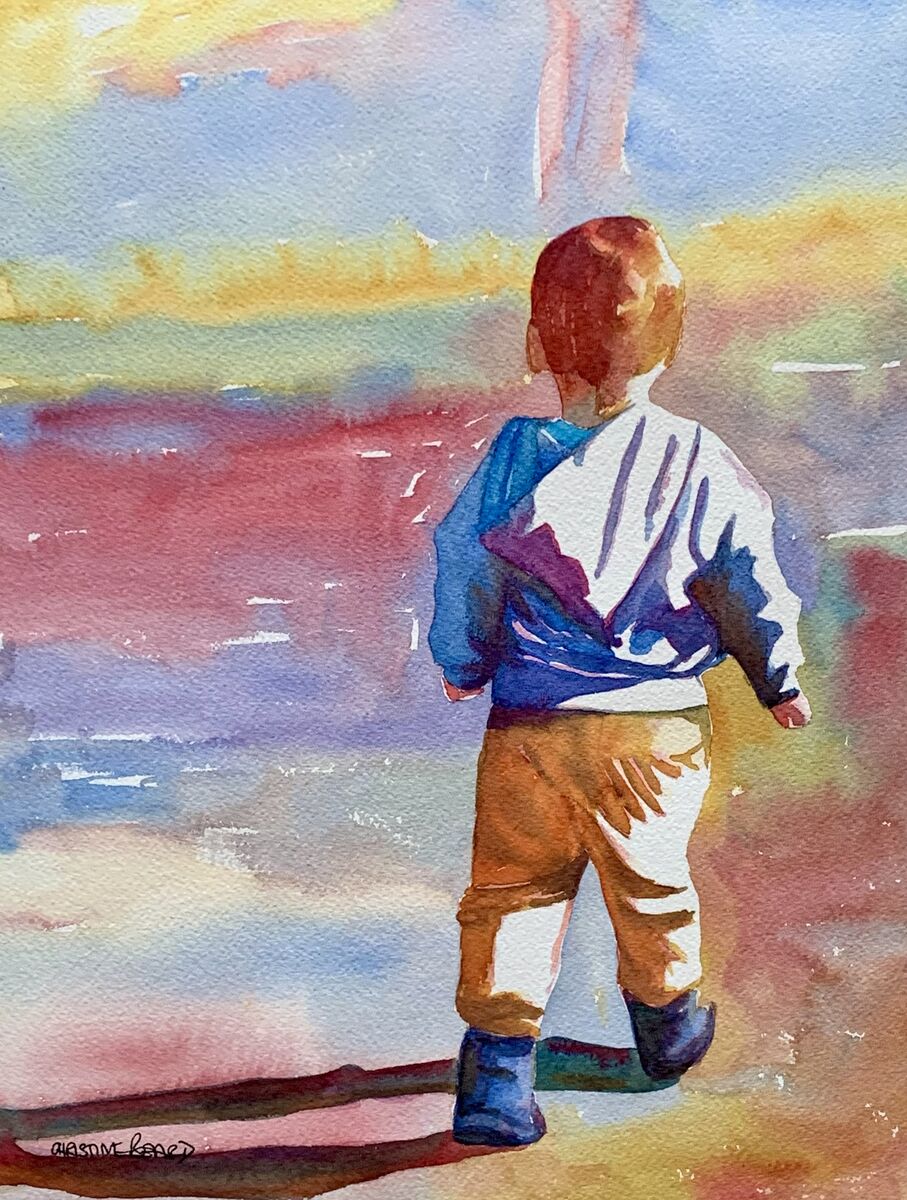 Tiny Feet, Big Discovery By Christine Beard 2023 Watercolour On Paper 31 cm W x 41 cm H