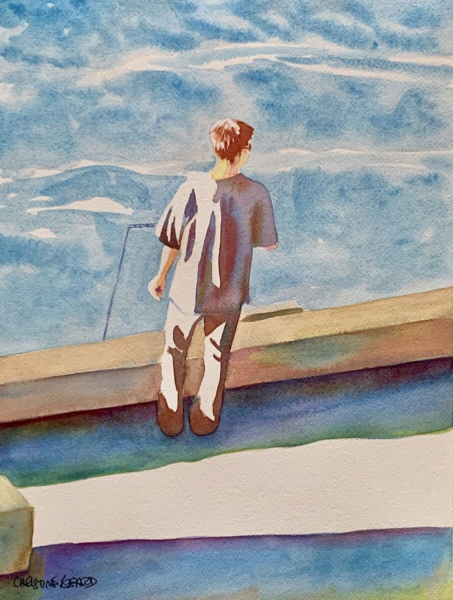 The Last Cast Of The Day By Christine Beard 2023 Watercolour On Paper 31 cm W x 41 cm H