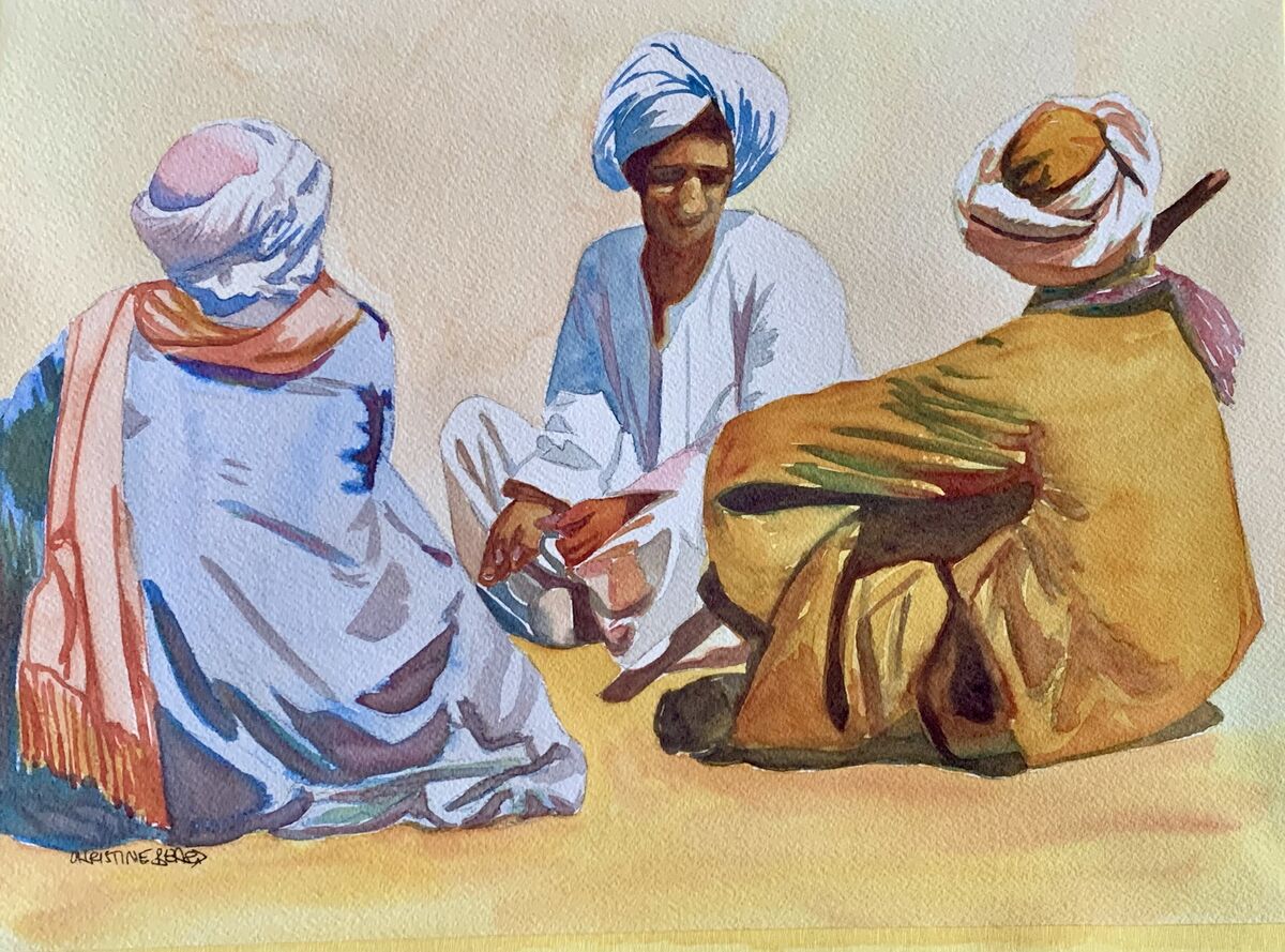 Sitting Together In The Sunshine By Christine Beard 2023 Watercolour On Paper 41 cm W x 31 cm H