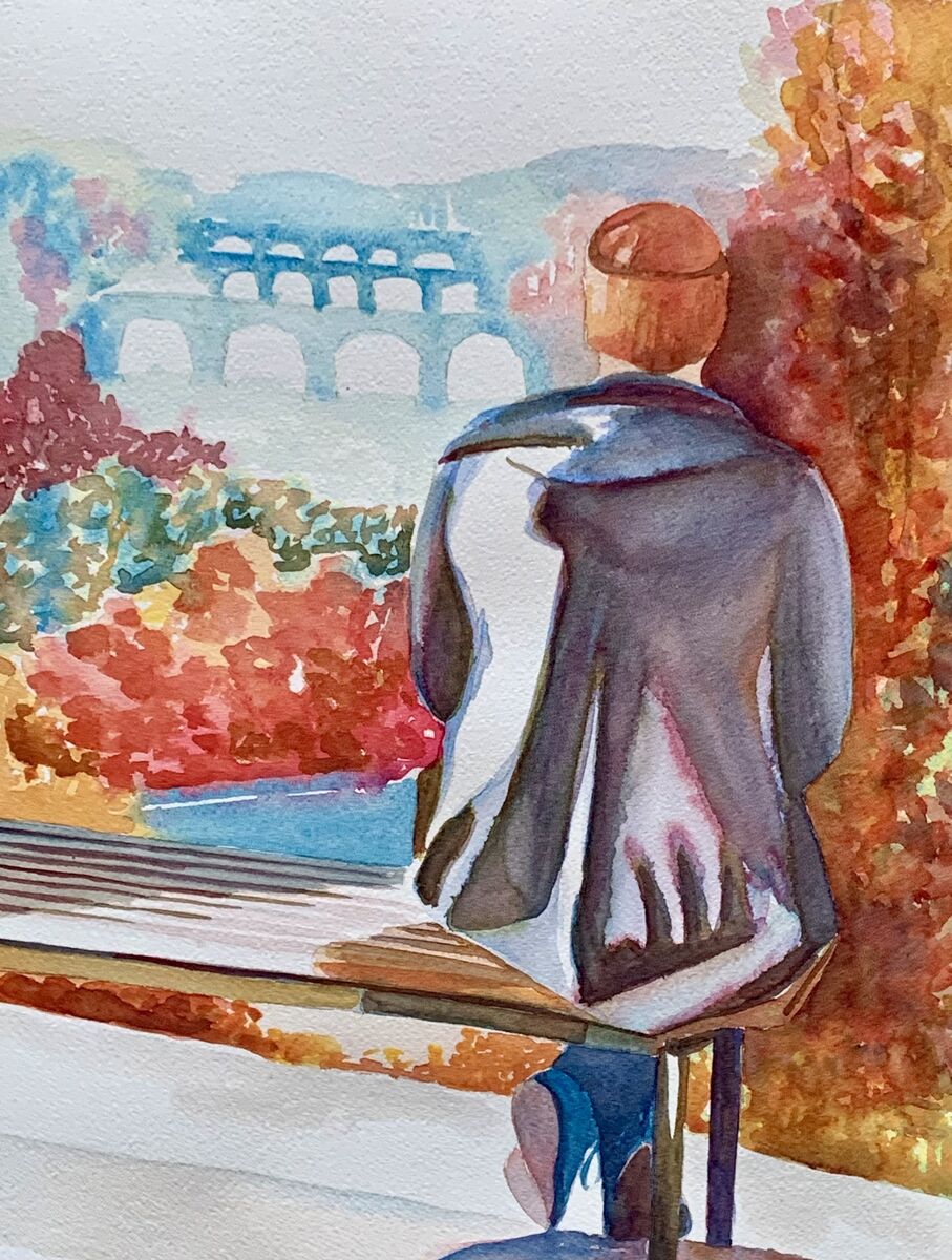 The Bench With A View By Christine Beard 2023 Watercolour On Paper 31 cm W x 41 cm H