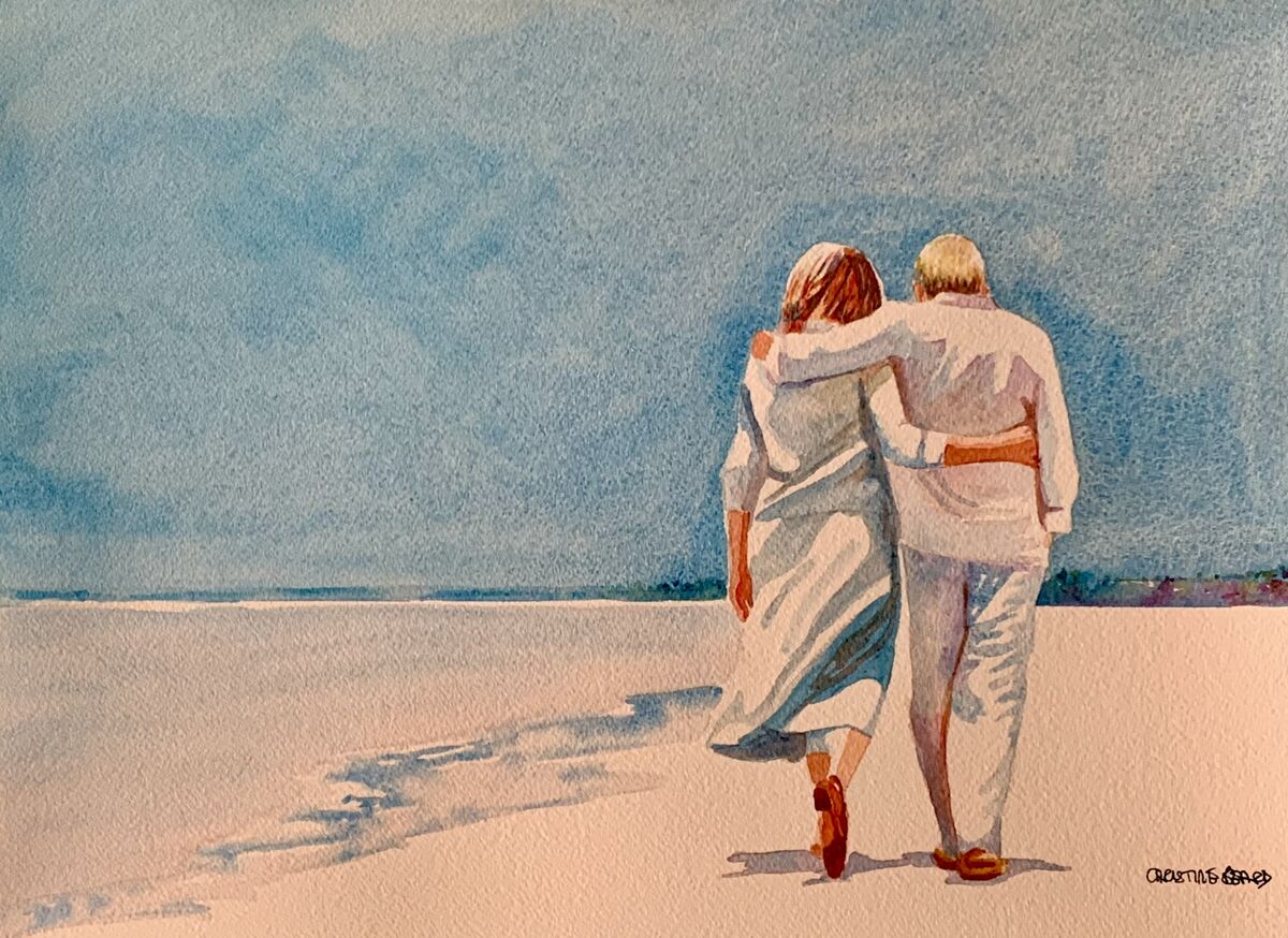 White Sands Stroll By Christine Beard 2023 Watercolour On Paper 41 cm W x 31 cm H