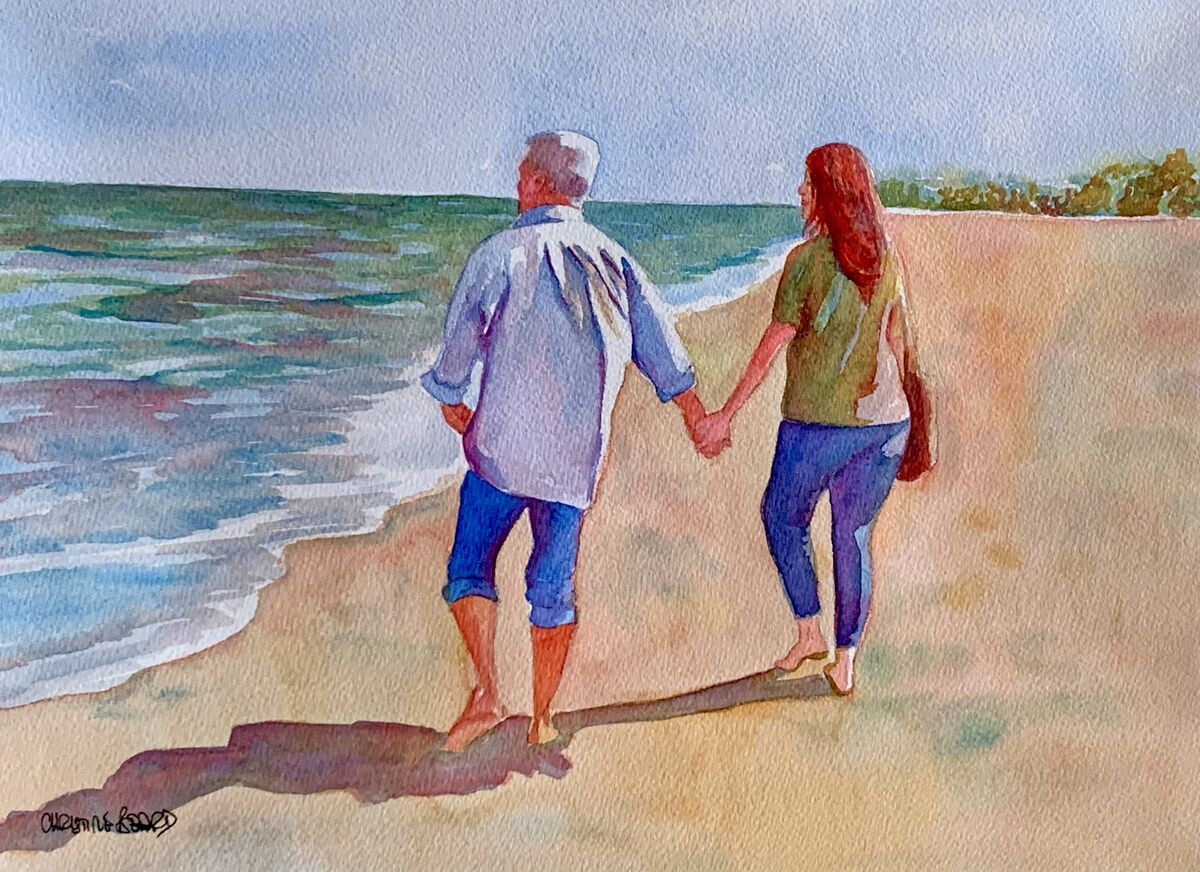 Beach Bonding By Christine Beard 2023 Watercolour On Paper 41 cm W x 31 cm H