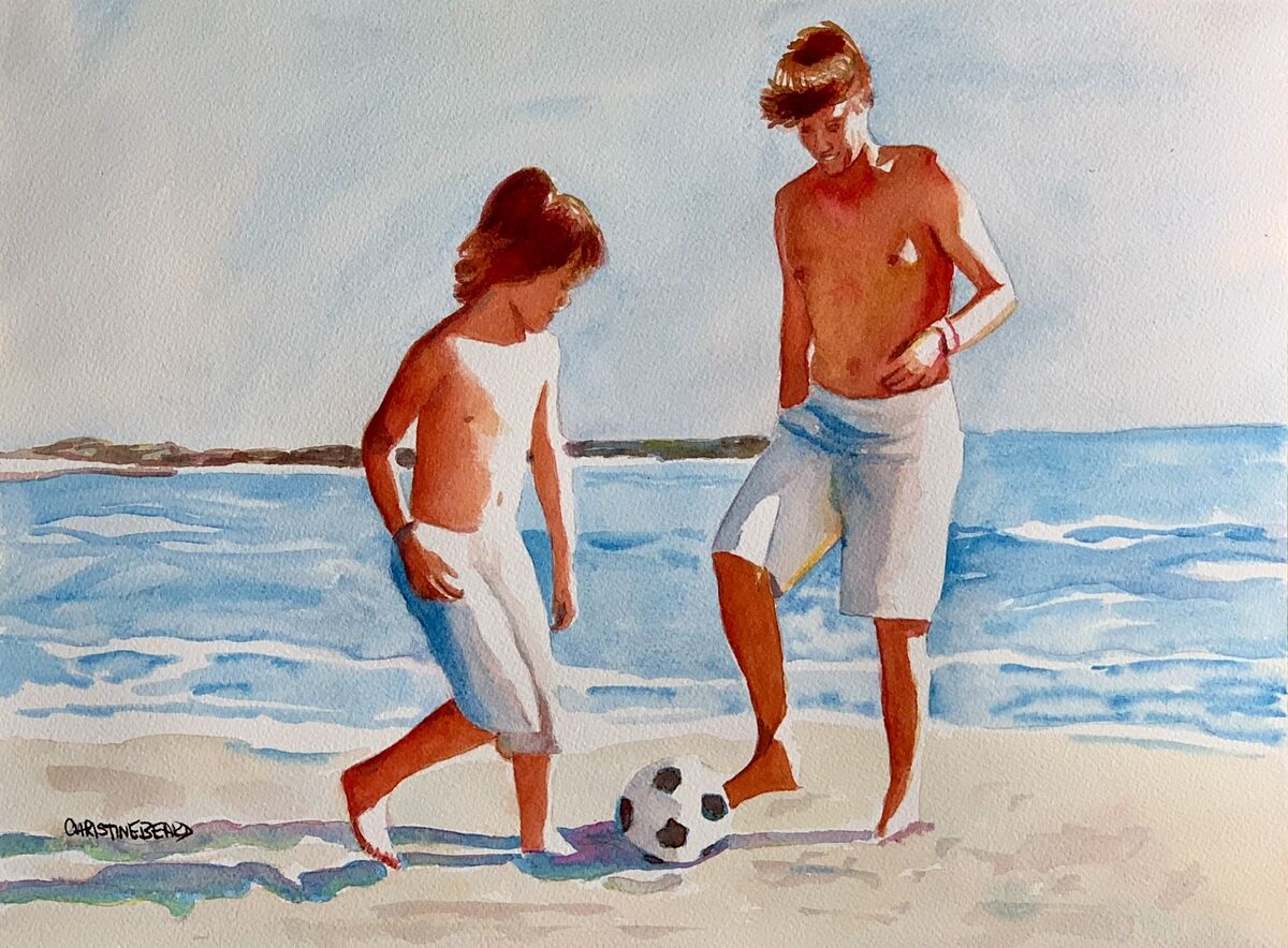 Sand And Footy By Christine Beard 2023 Watercolour On Paper 41 cm W x 31 cm H