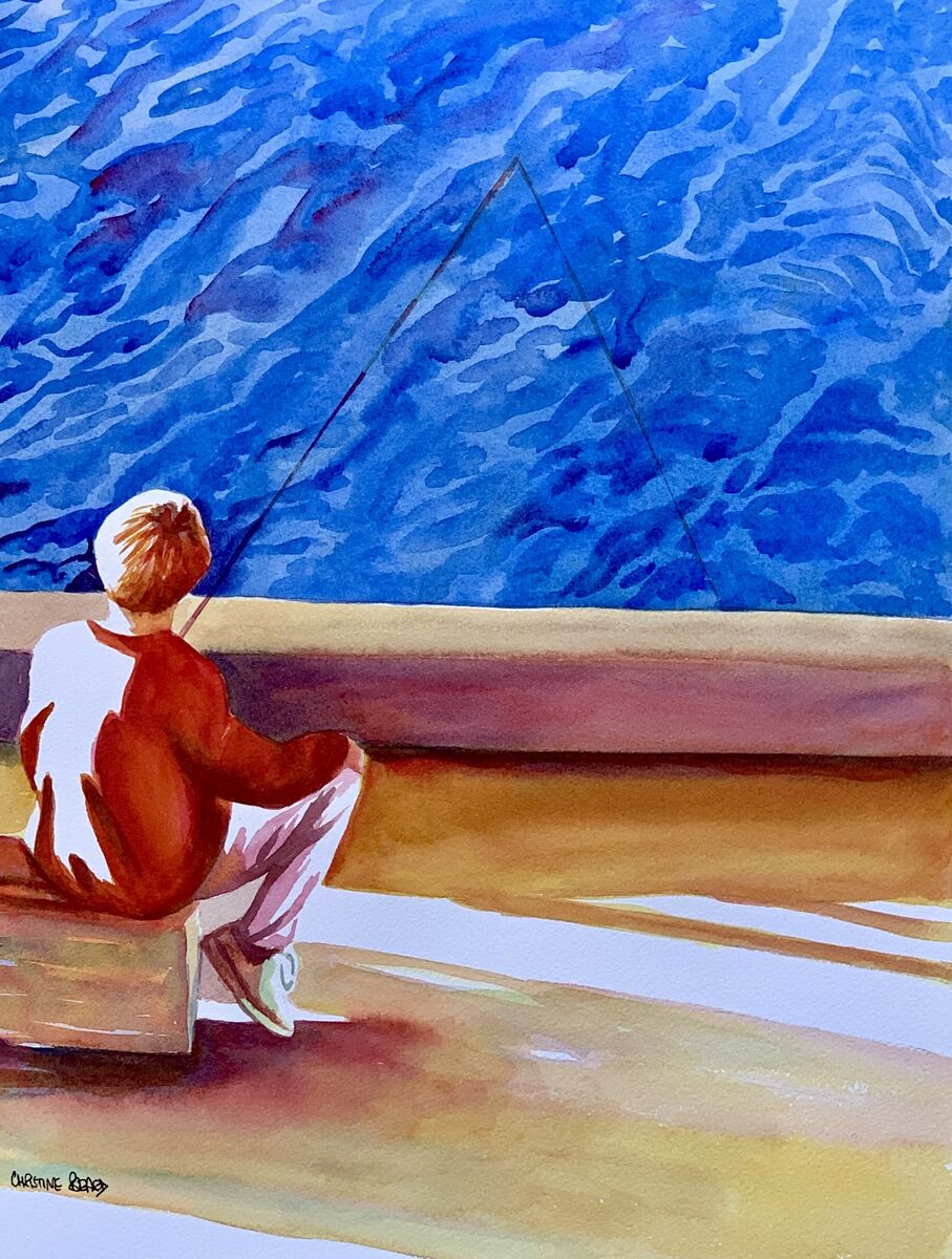 Wharfside Fishing By Christine Beard 2023 Watercolour On Paper 31 cm W x 41 cm H