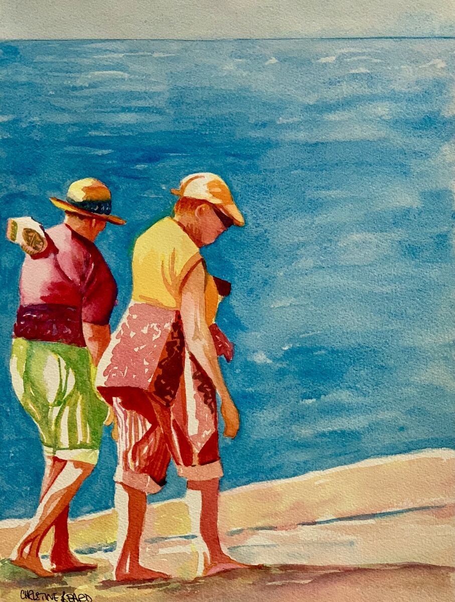 Golden Years Beach Walk By Christine Beard 2023 Watercolour On Paper 31 cm W x 41 cm H