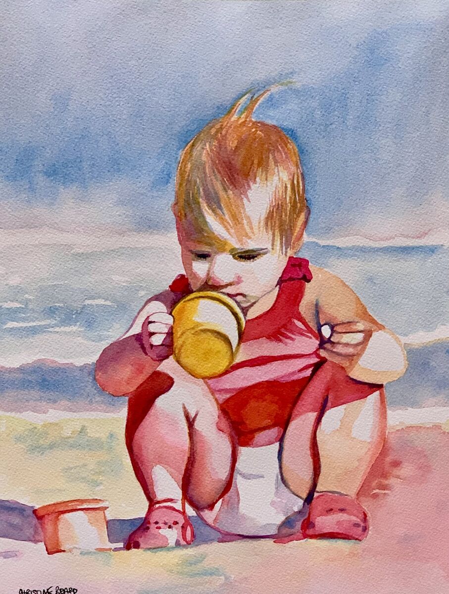 Baby's Beach Time By Christine Beard 2023 Watercolour On Paper 31 cm W x 41 cm H