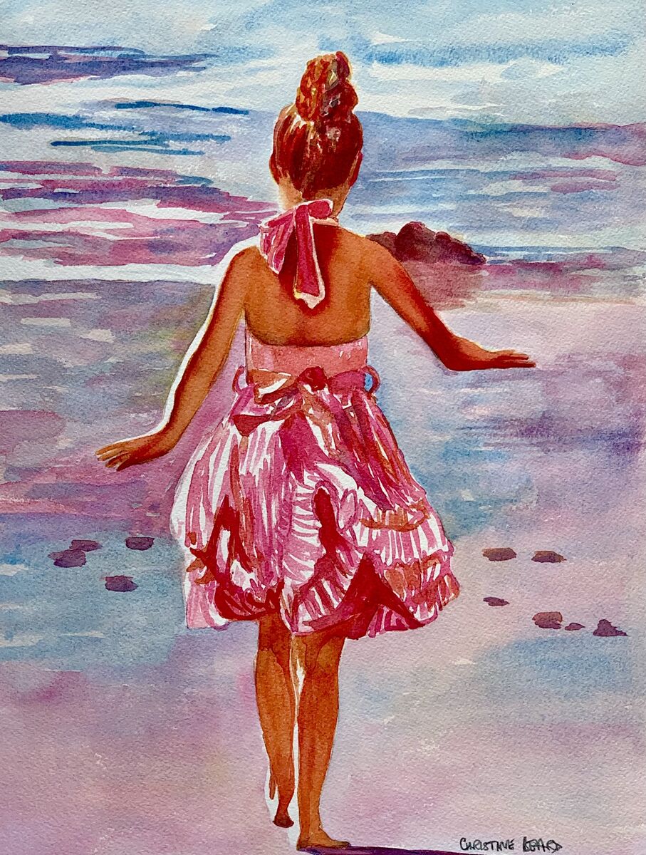 Baby's Beach Time By Christine Beard 2023 Watercolour On Paper 31 cm W x 41 cm H