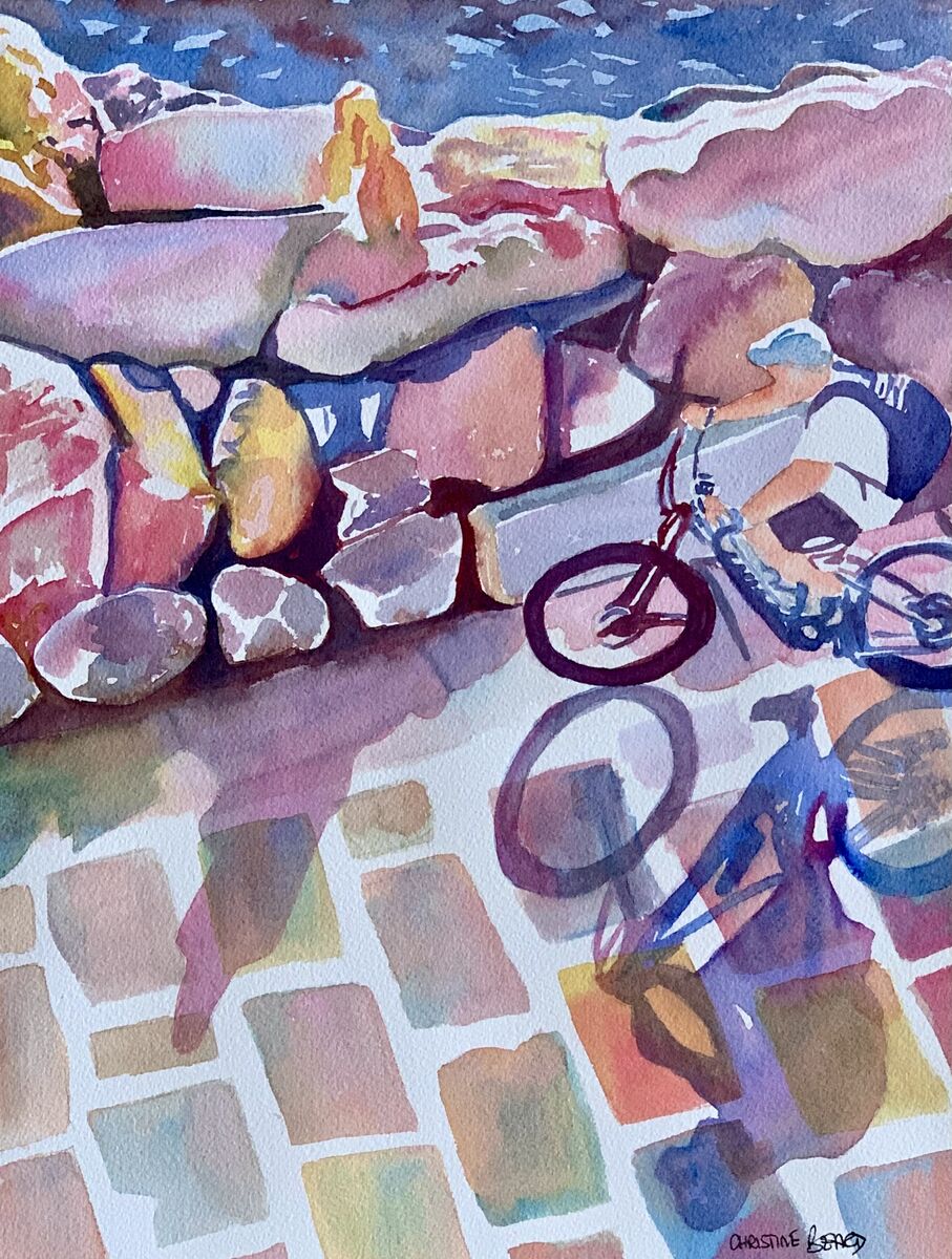 Promenade Biking By Christine Beard 2023 Watercolour On Paper 31 cm W x 41 cm H