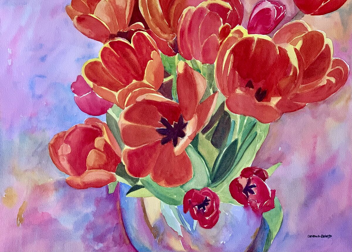 Tulip Display By Christine Beard 2023 Watercolour On Paper 61 cm W x 46 cm H