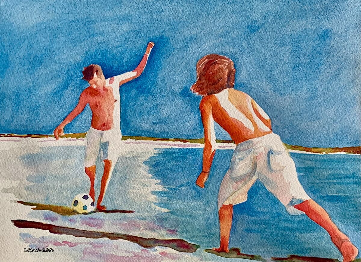 Seashore Soccer By Christine Beard 2023 Watercolour On Paper 41 cm W x 31 cm H