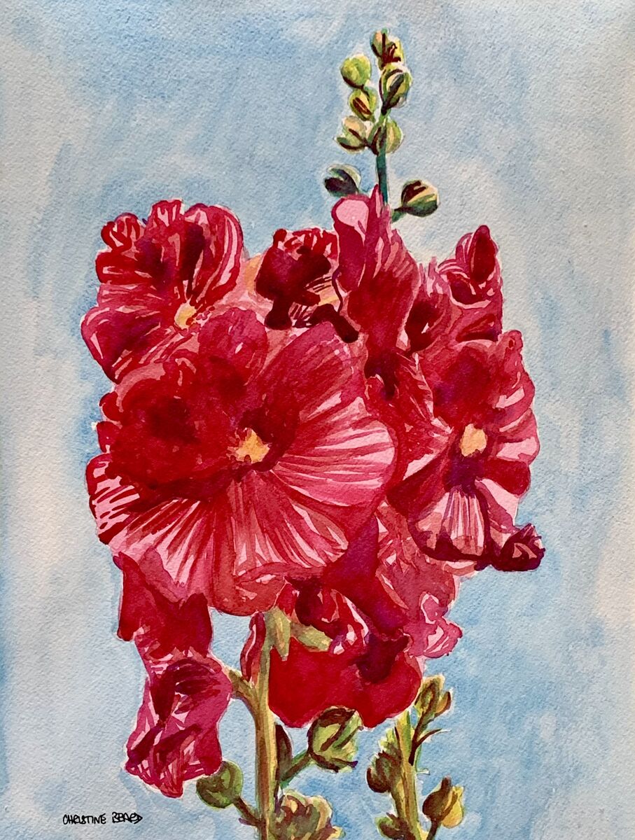 Hollyhocks By Christine Beard 2023 Watercolour On Paper 31 cm W x 41 cm H