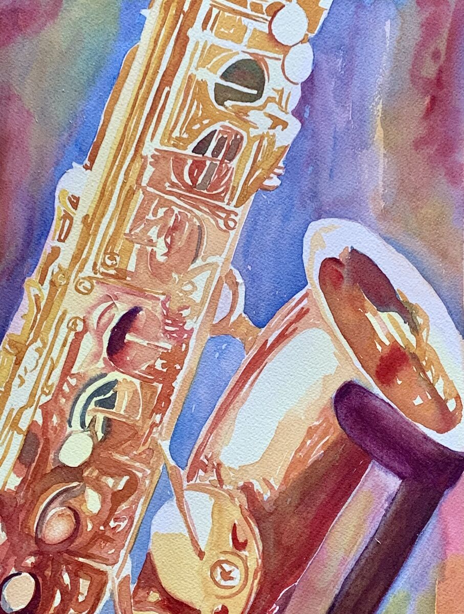 Saxophone At The Ready By Christine Beard 2023 Watercolour On Paper 31 cm W x 41 cm H