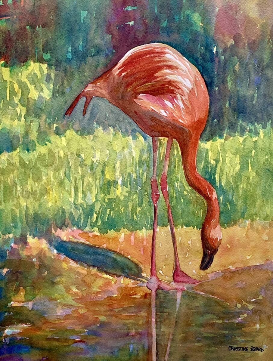 Drinking with Grace Flamingo's Pause By Christine Beard 2023 Watercolour On Paper 31 cm W x 41 cm H