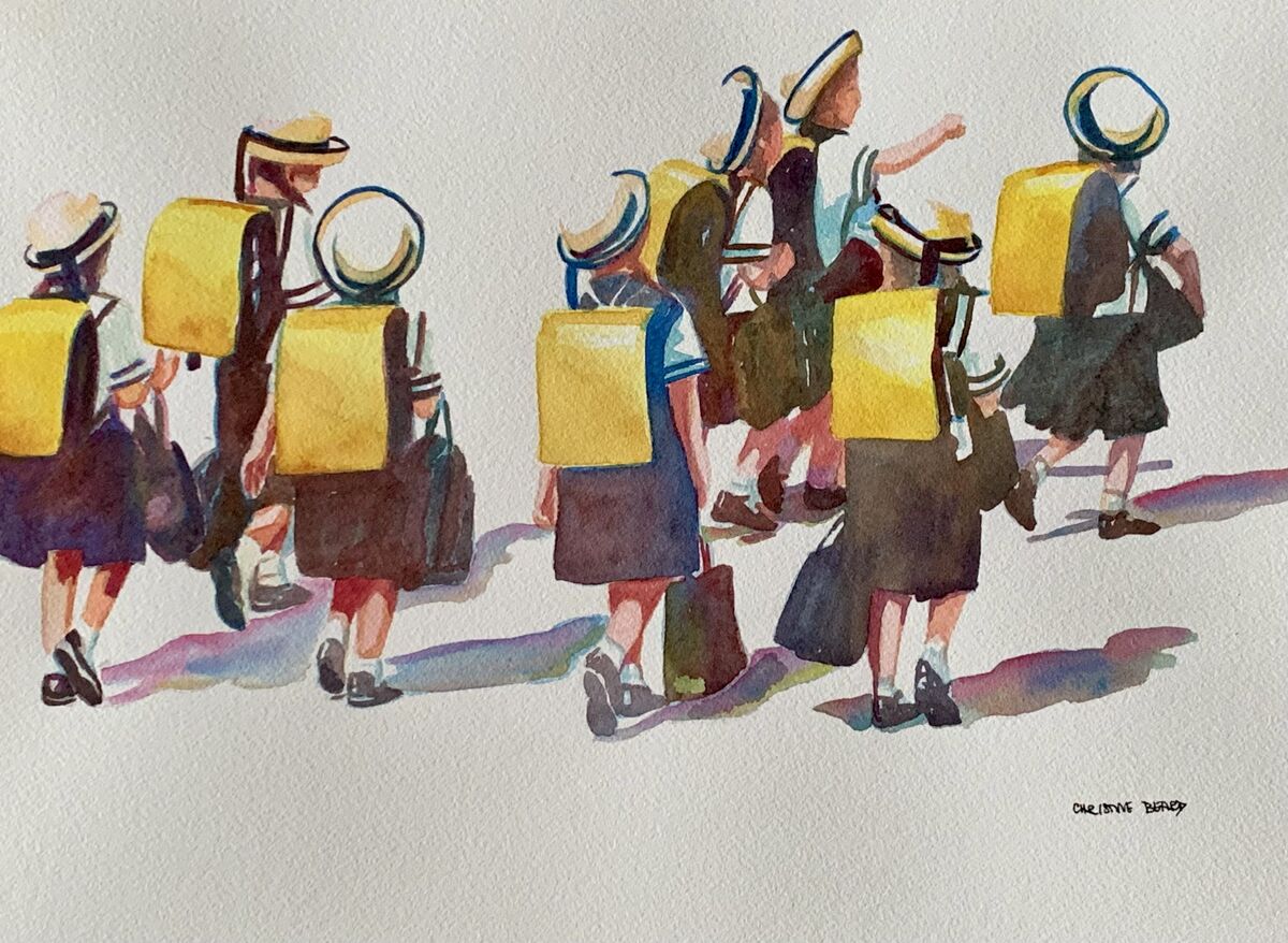 Uniformed Scholars By Christine Beard 2023 Watercolour On Paper 41 cm W x 31 cm H