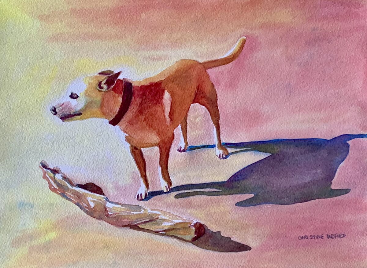 Fetch Fun in the Sun By Christine Beard 2023 Watercolour On Paper 41 cm W x 31 cm H