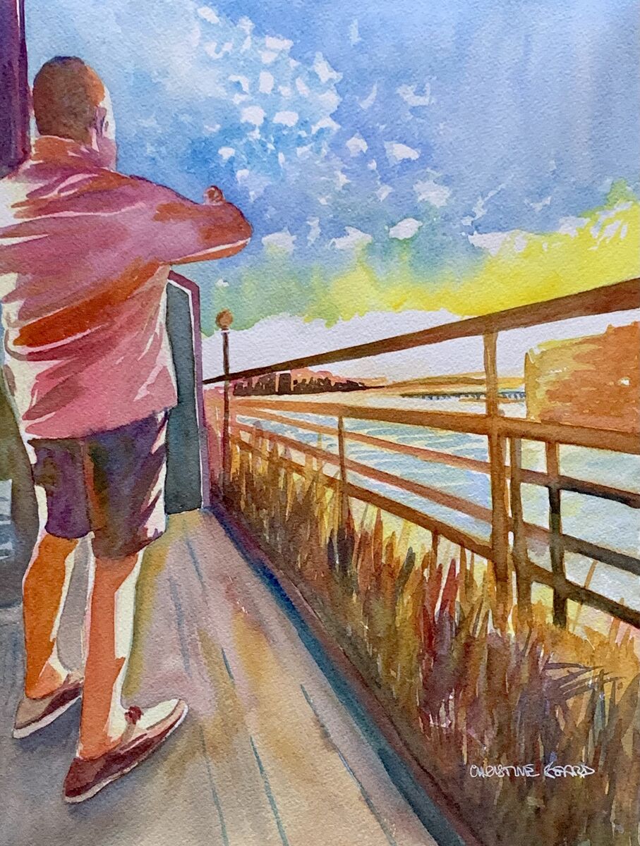 Admiring the Painted Sky By Christine Beard 2023 Watercolour On Paper 31 cm W x 41 cm H