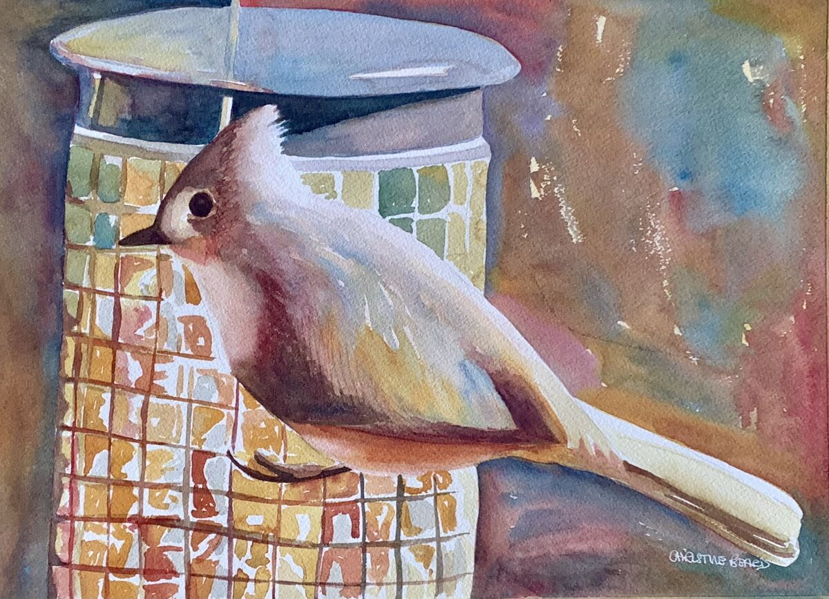 The Bird Feeder By Christine Beard 2023 Watercolour On Paper 41 cm W x 31 cm H