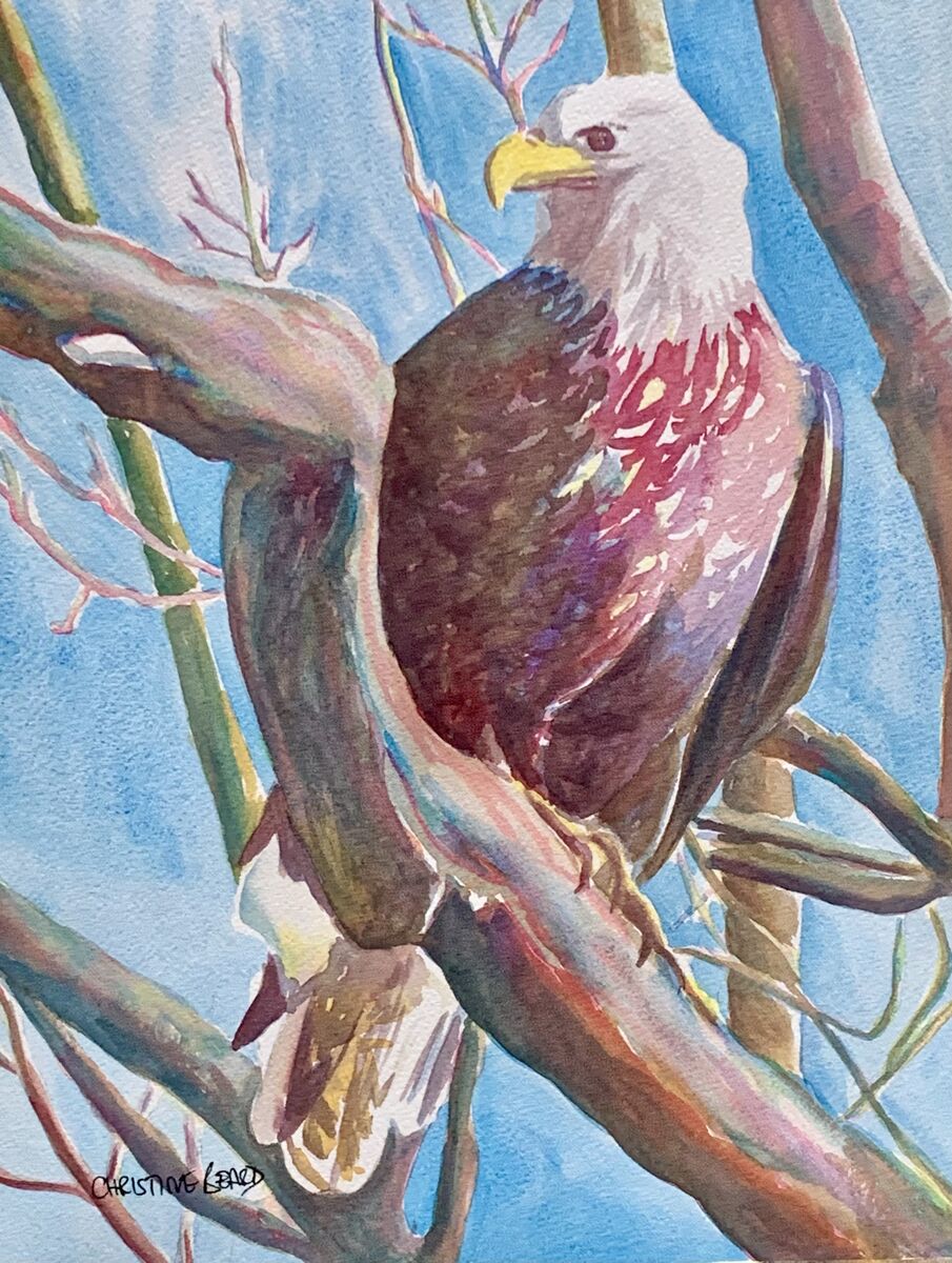 Eagle's Intense Stare By Christine Beard 2023 Watercolour On Paper 31 cm W x 41 cm H
