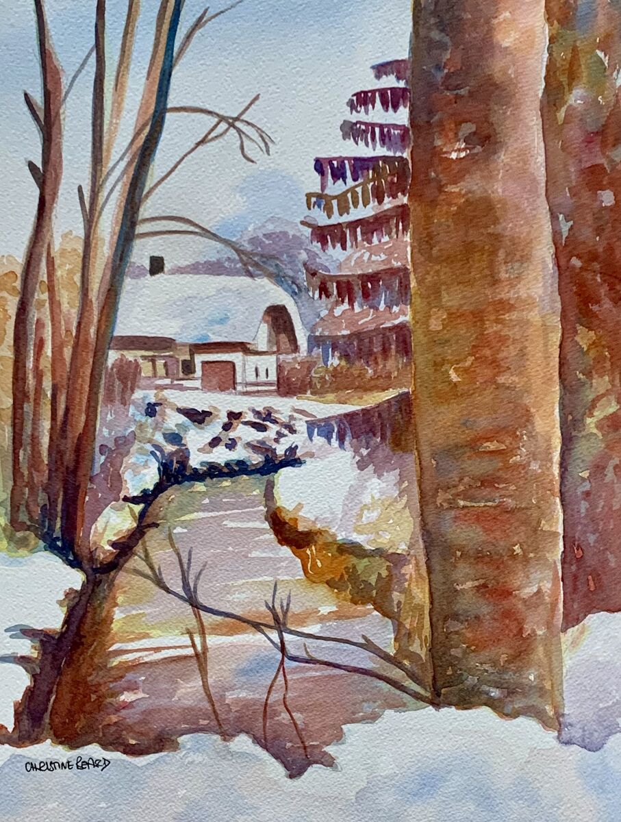 Wintry Path By Christine Beard 2023 Watercolour On Paper 31 cm W x 41 cm H