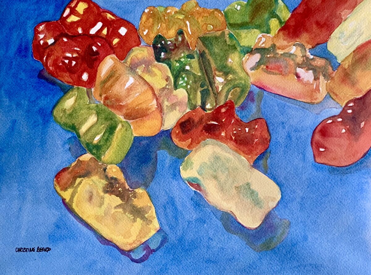 Gummy Bear Rainbow By Christine Beard 2024 Watercolour On Paper 41 cm W x 31 cm H