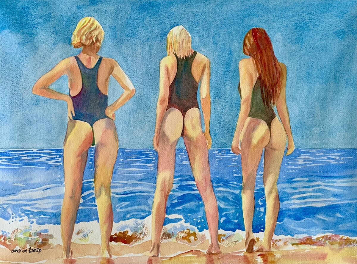 Swimsuit Trio By Christine Beard 2024 Watercolour On Paper 61 cm W x 46 cm H