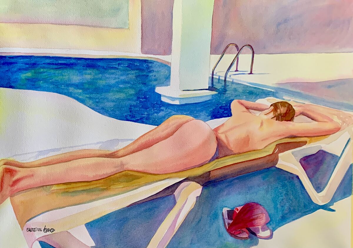 Poolside Elegance By Christine Beard 2024 Watercolour On Paper 61 cm W x 46 cm H