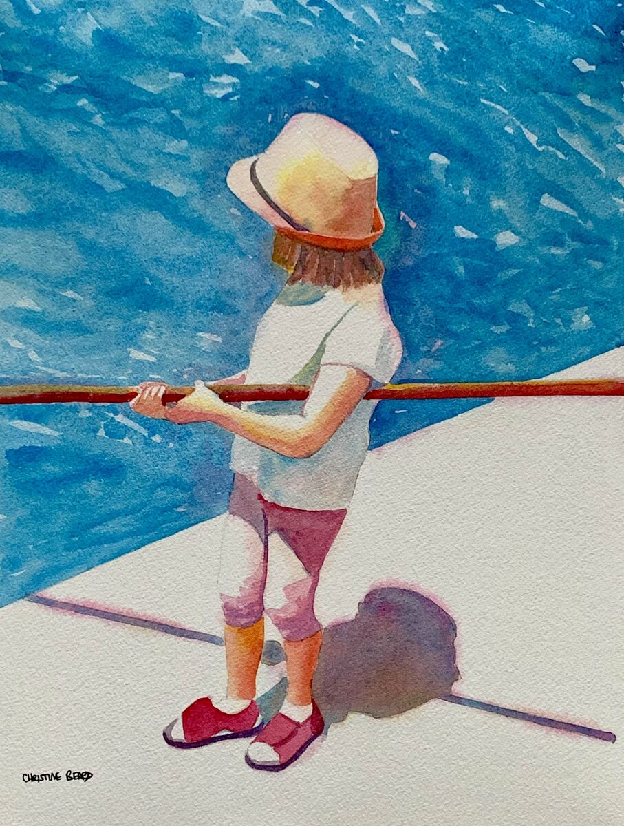 Little Fishing Assistant By Christine Beard 2024 Watercolour On Paper 31 cm W x 41 cm H
