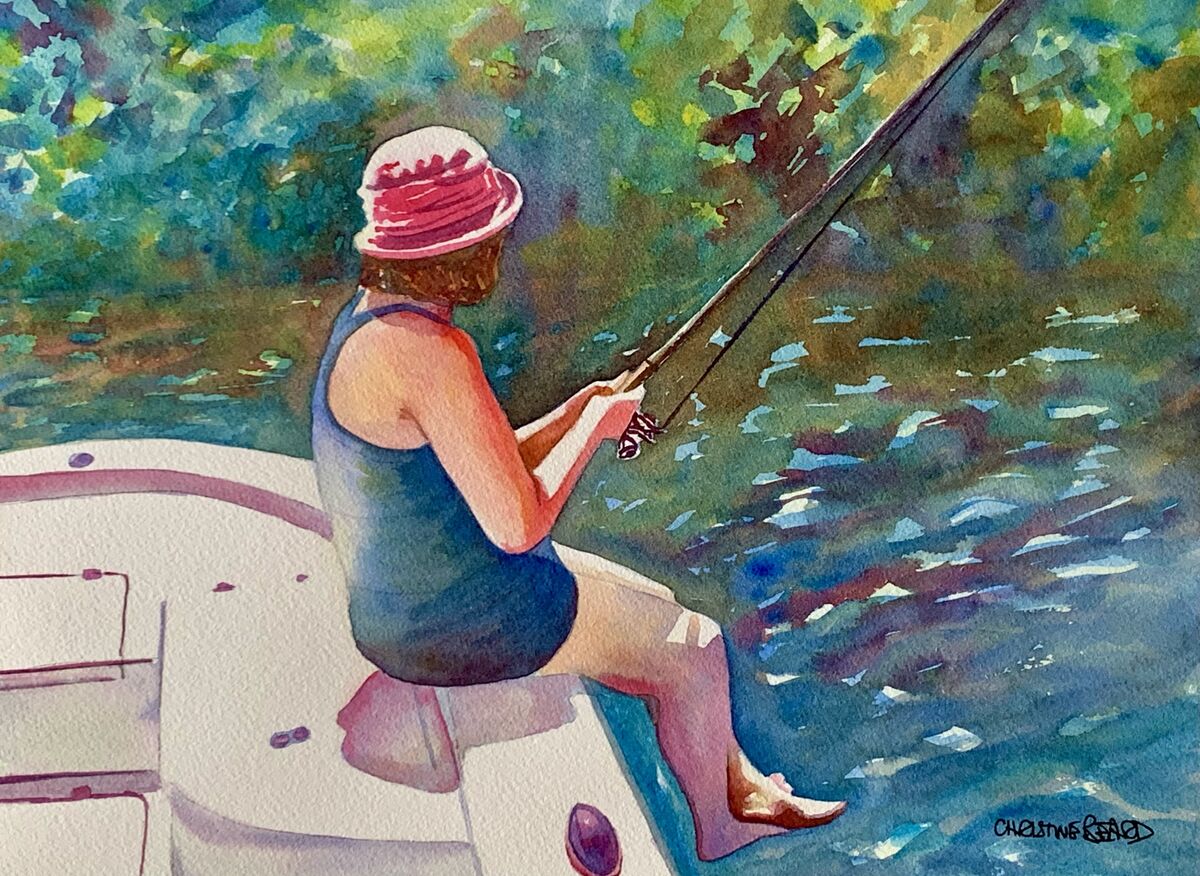 River Fishing Peace By Christine Beard 2024 Watercolour On Paper 41 cm W x 31 cm H
