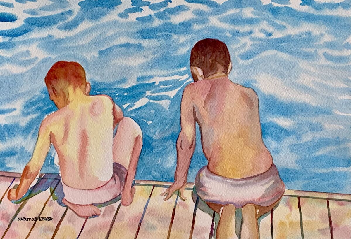 Quayside Playmates By Christine Beard 2024 Watercolour On Paper 41 cm W x 31 cm H