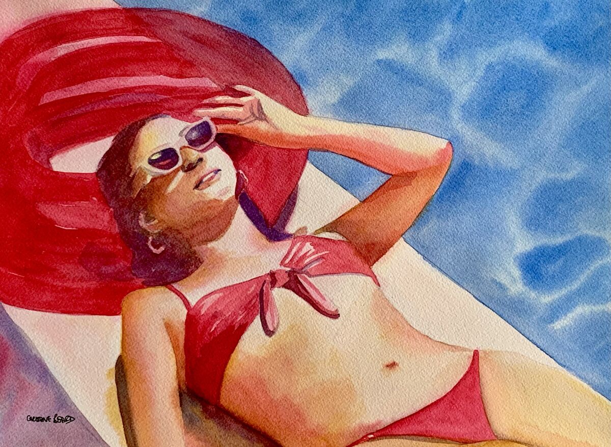 Poolside Sunbathing By Christine Beard 2024 Watercolour On Paper 41 cm W x 31 cm H