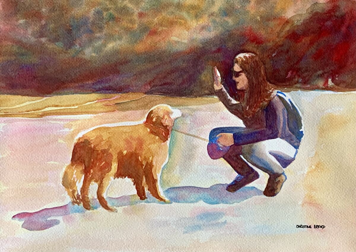 Canine Playtime By Christine Beard 2024 Watercolour On Paper 41 cm W x 31 cm H