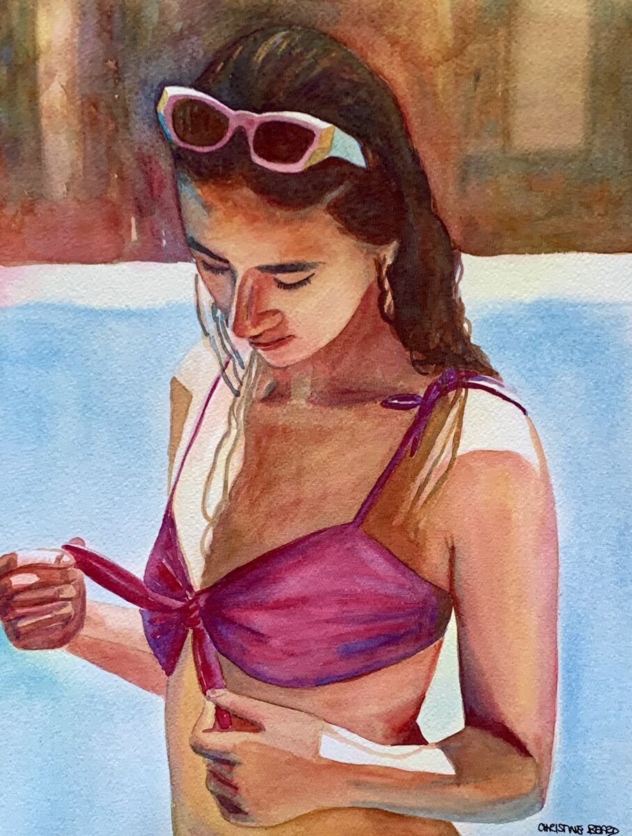 Poolside Musing By Christine Beard 2024 Watercolour On Paper 31 cm W x 41 cm H