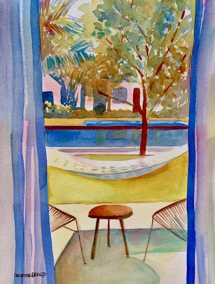 Poolside Oasis By Christine Beard 2024 Watercolour On Paper 31 cm W x 41 cm H