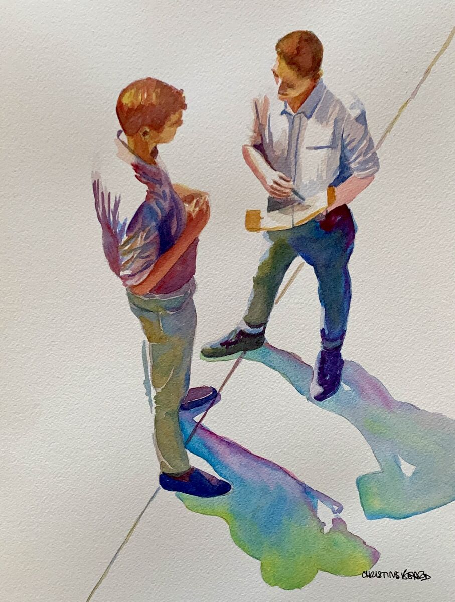 Business Banter By Christine Beard 2024 Watercolour On Paper 31 cm W x 41 cm H