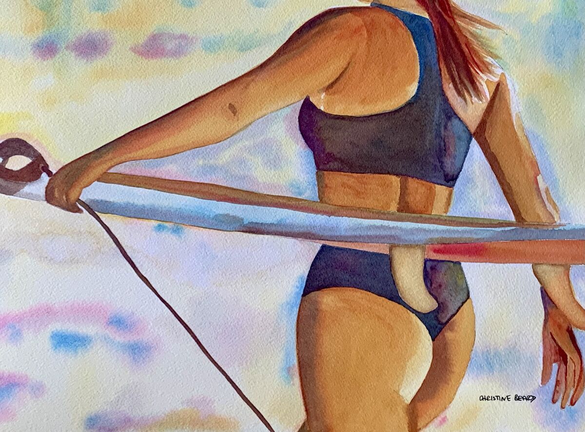 Surf Board in Tow By Christine Beard 2024 Watercolour On Paper 41 cm W x 31 cm H