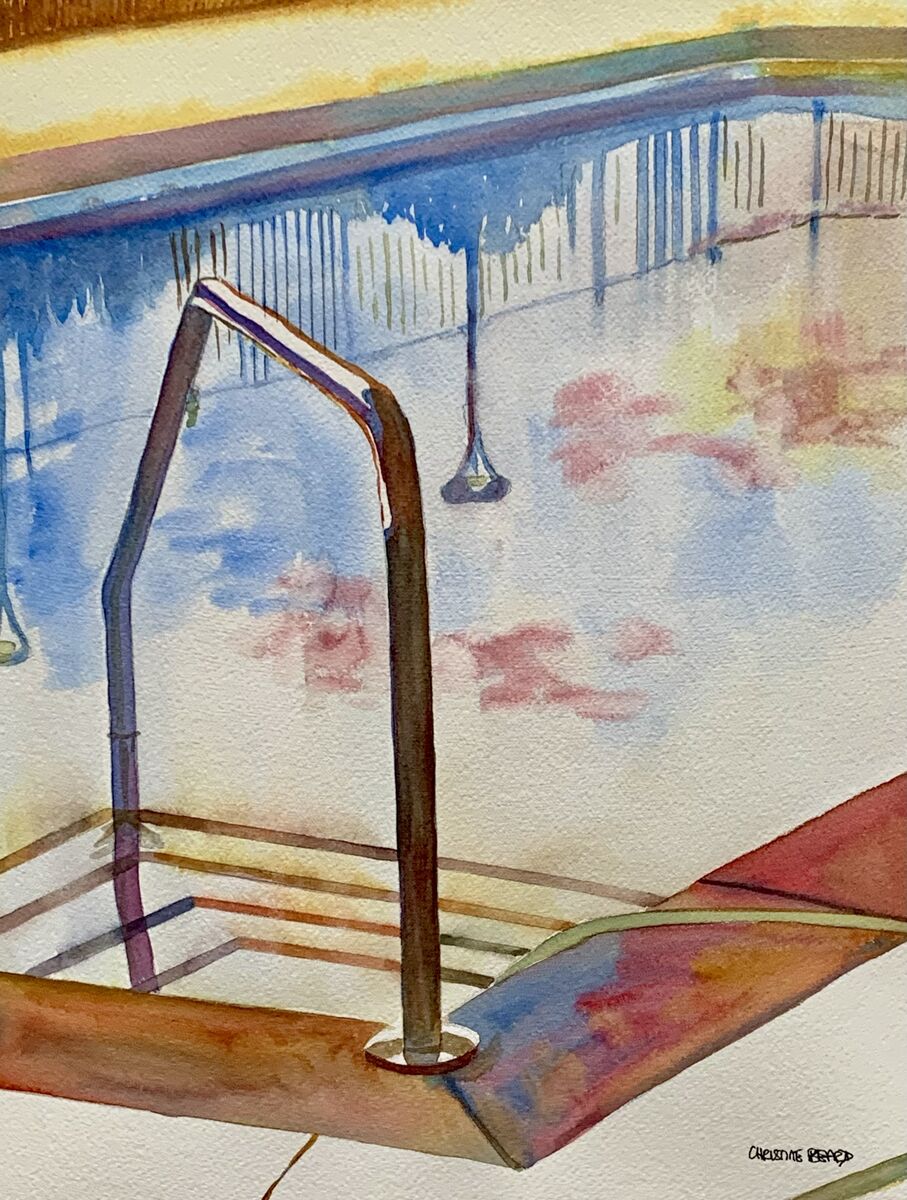 Daybreak Poolside By Christine Beard 2024 Watercolour On Paper 31 cm W x 41 cm H