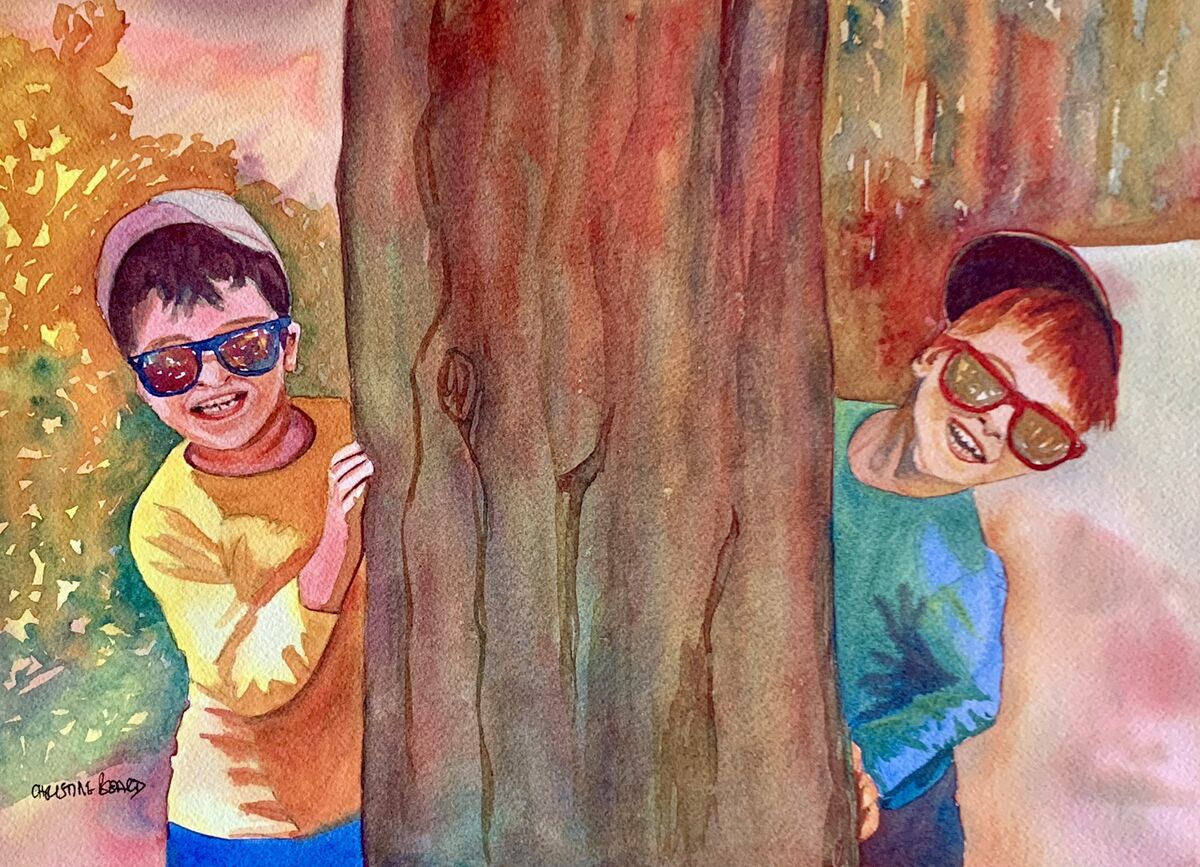 Giggles in Greenery By Christine Beard 2024 Watercolour On Paper 41 cm W x 31 cm H