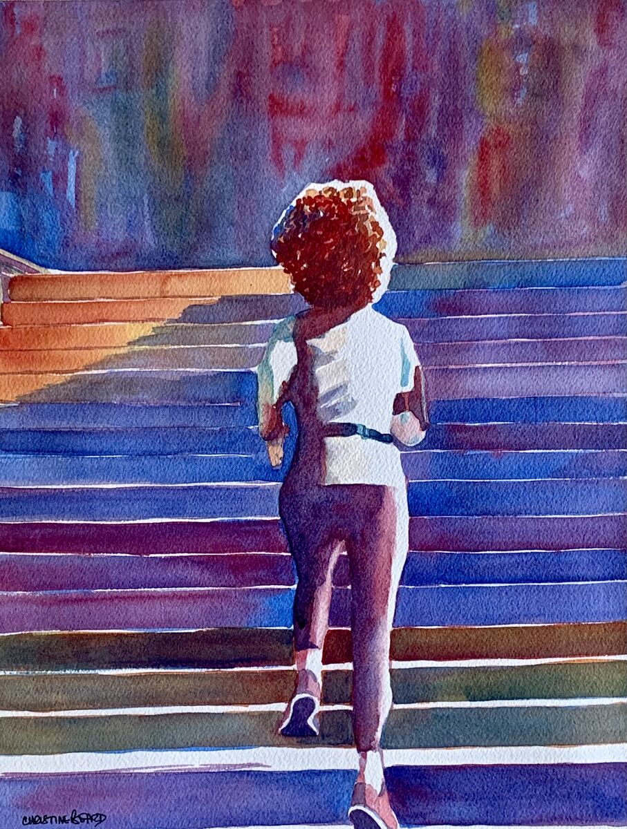 Stair Jogging By Christine Beard 2024 Watercolour On Paper 31 cm W x 41 cm H