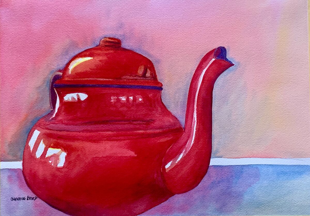 Gleaming Tea Pot By Christine Beard 2024 Watercolour On Paper 41 cm W x 31 cm H
